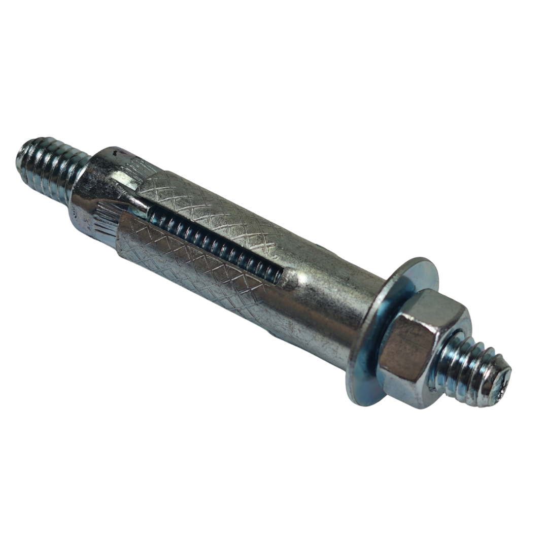 O Chumbador CB com Prisioneiro é um sistema de ancoragem mecânica composto por bucha expansiva cone roscado, prisioneiro roscado, porca e arruela, projetado para fixações seguras em concreto maciço. A bucha metálica é dimensionada para expandir de forma controlada durante o aperto da porca, criando forte aderência ao concreto. O prisioneiro é fabricado com rosca máquina de precisão, permitindo reaperto e desmontagem do conjunto fixado. É produzido em aço carbono, com opções de acabamento como zincado, galvanizado a fogo ou inox, garantindo resistência mecânica e proteção contra corrosão.