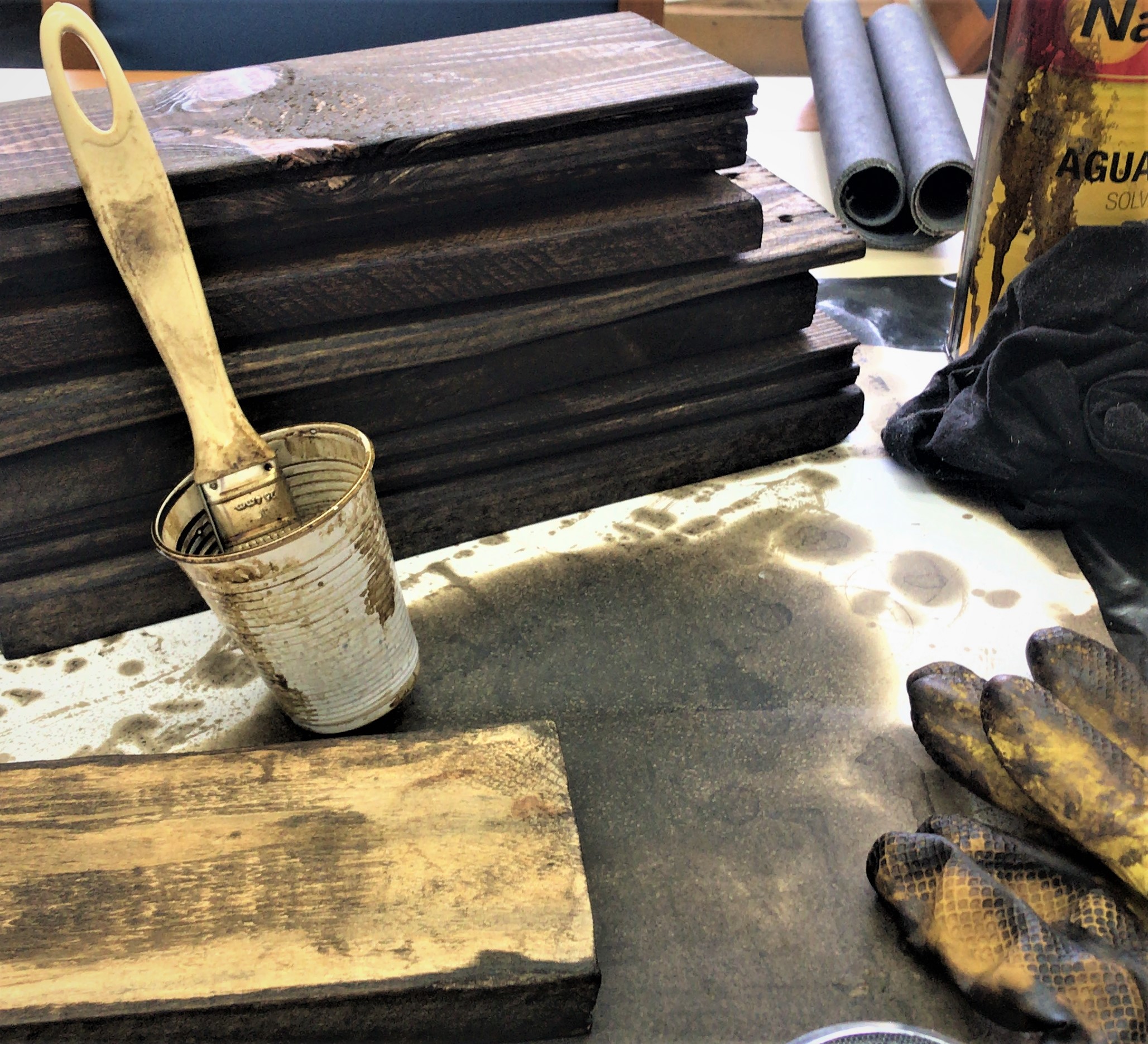 - Verniz ou betume para o envelhecimento da madeira (utilize embalagens descartáveis para o betume)
