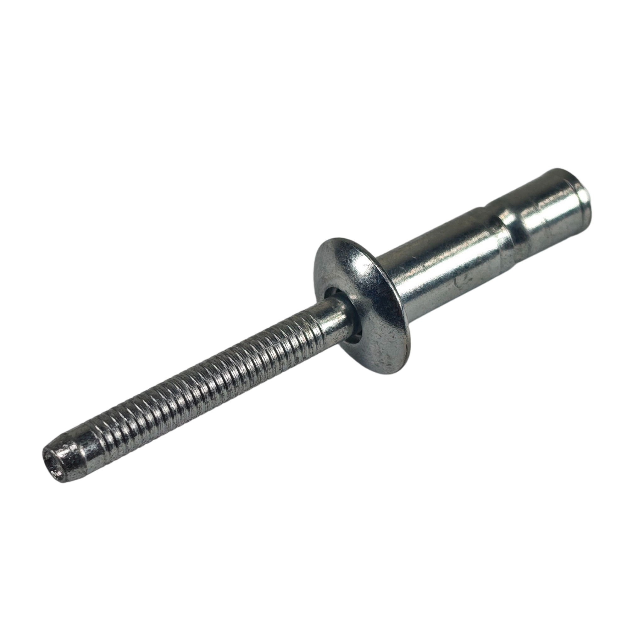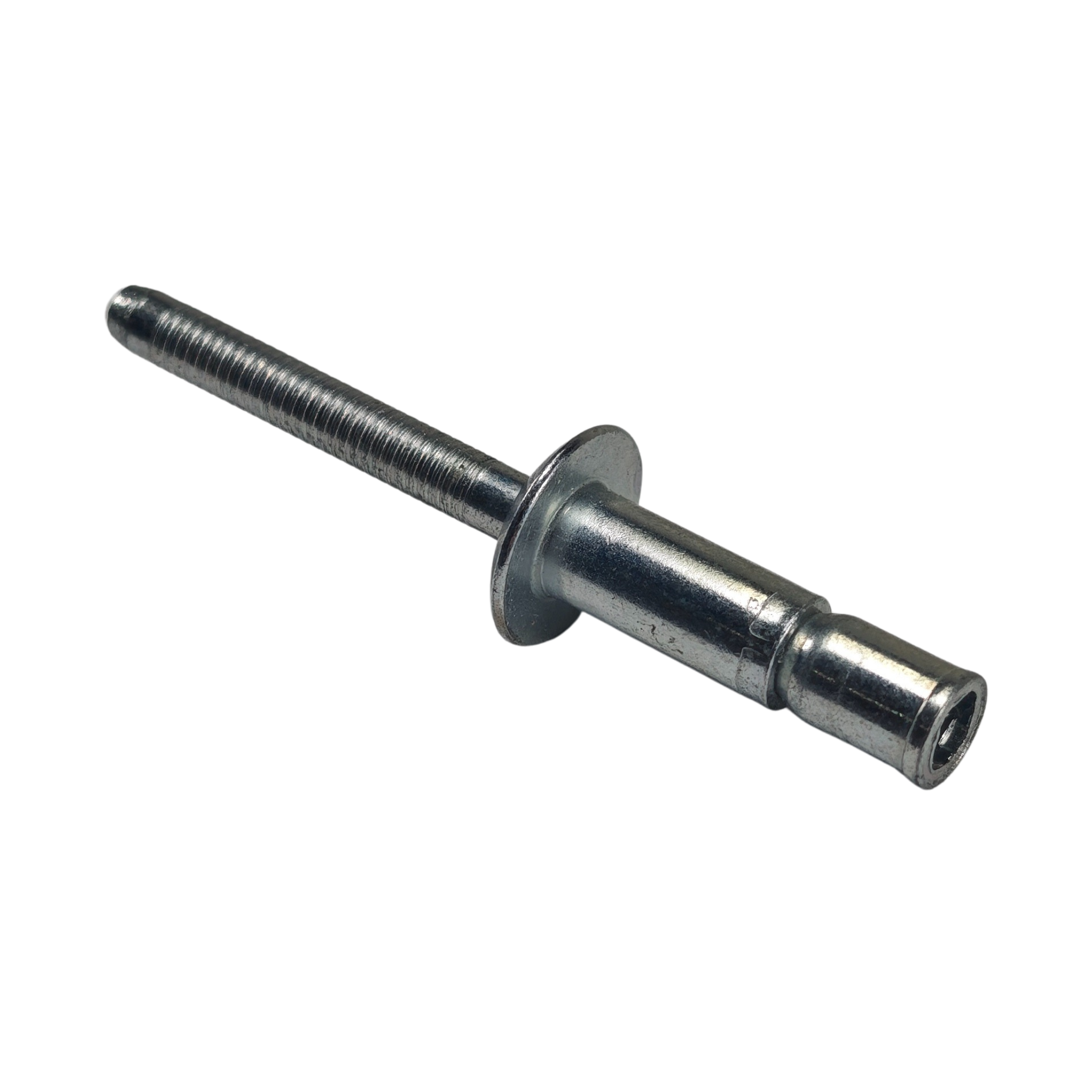 O que é e principais funções: O rebite de repuxo é utilizado para fixar duas ou mais peças pelo acesso de um único lado, sendo aplicado com rebitador manual, pneumático ou hidráulico. Durante a instalação, o mandril é tracionado, expandindo o corpo do rebite e formando uma fixação firme, resistente e permanente. É uma solução prática e eficiente para montagens rápidas, sem necessidade de rosca ou solda.